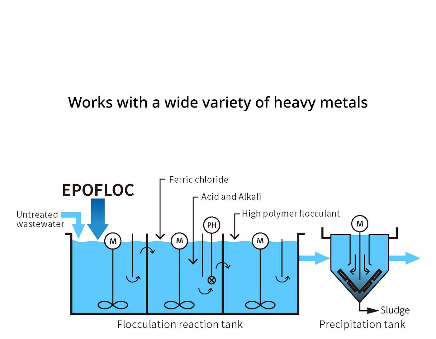In Japan, EPOFLOC is currently deployed at over 1,000 facilities, including power plants, research institutes, plating factories, waste treatment centers, and manufacturers of electronic and automotive components. Internationally, EPOFLOC is widely adopted and well regarded across Europe (notably Germany and the UK), Southeast Asia (including Thailand and the Philippines), China, and Taiwan. EPOFLOC meets the requirements of the U.S. Toxic Substances Control Act (TSCA) and is approved for supply to the U.S. market.Please contact us for details.