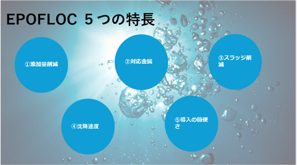 エポフロックの凝集性は非常に高いので、主剤として最初に使用することで薬剤の節約につながります。