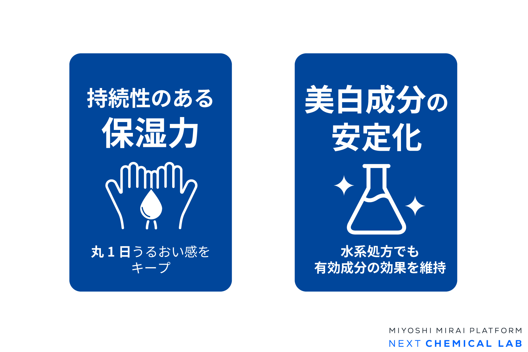 これまで配合が難しかった成分も処方に組み込め、新たなカテゴリーの製品開発を実現します。