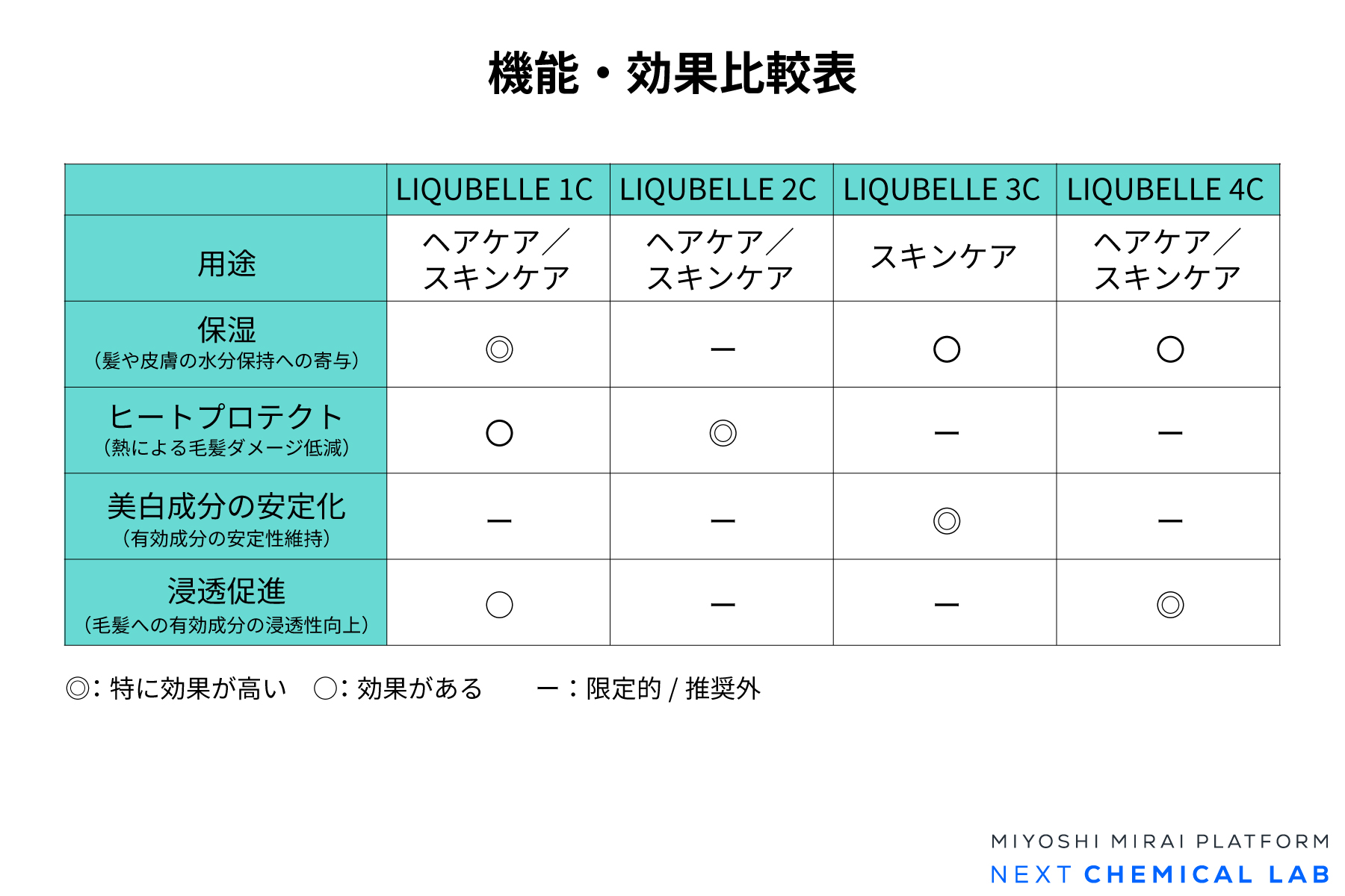 スキンケア用途に関する詳細は特集ページ「スキンケア製品の高機能化を実現 LIQUBELLEシリーズの保湿・美白成分安定化」をご覧ください。