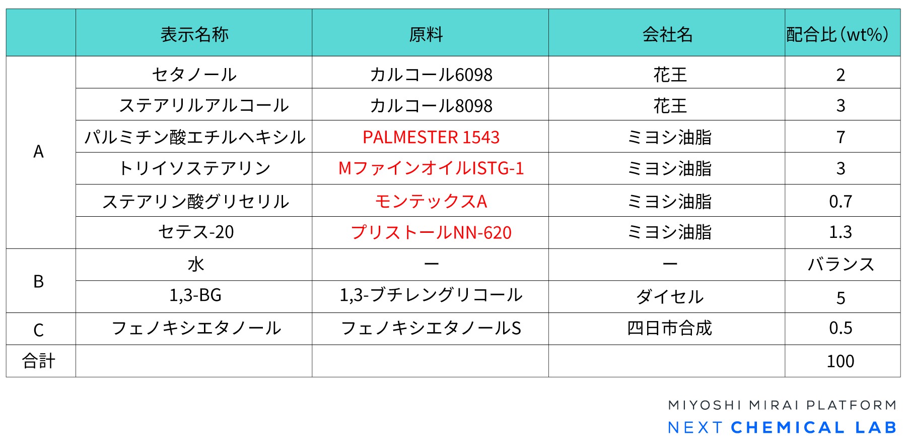 フェイスクリームの参考処方